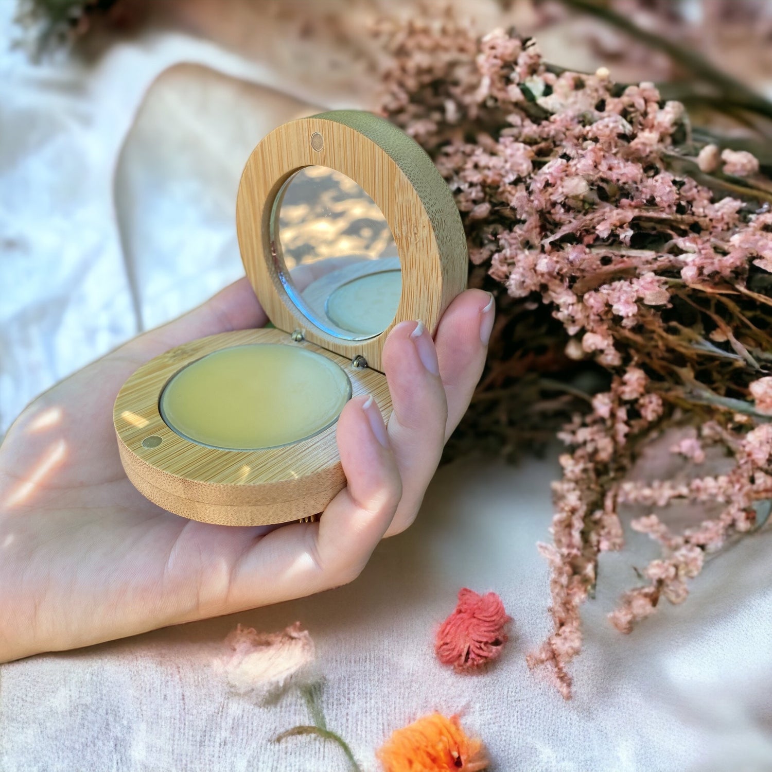 Our solid perfumes are light weight, pocket-sized and feature an internal mirror, so you can smell and look divine where ever you go.